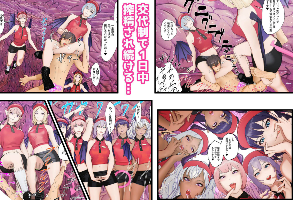 そんなサキュバス店員さん達の働きぶりと、サキュバス達に搾り取られる人間くん達の可愛がられっぷりをご紹介します。